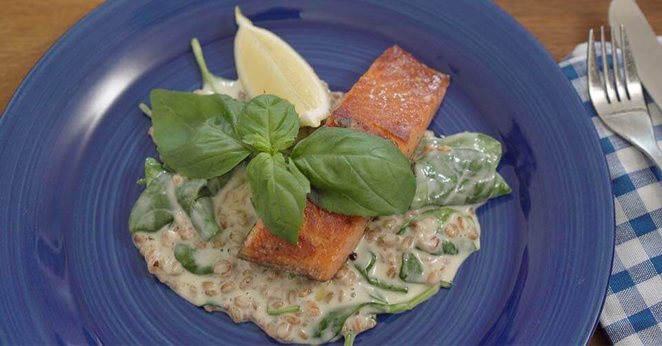 Krämiga spenatgryn till en härlig ugnstekt laxfilé
